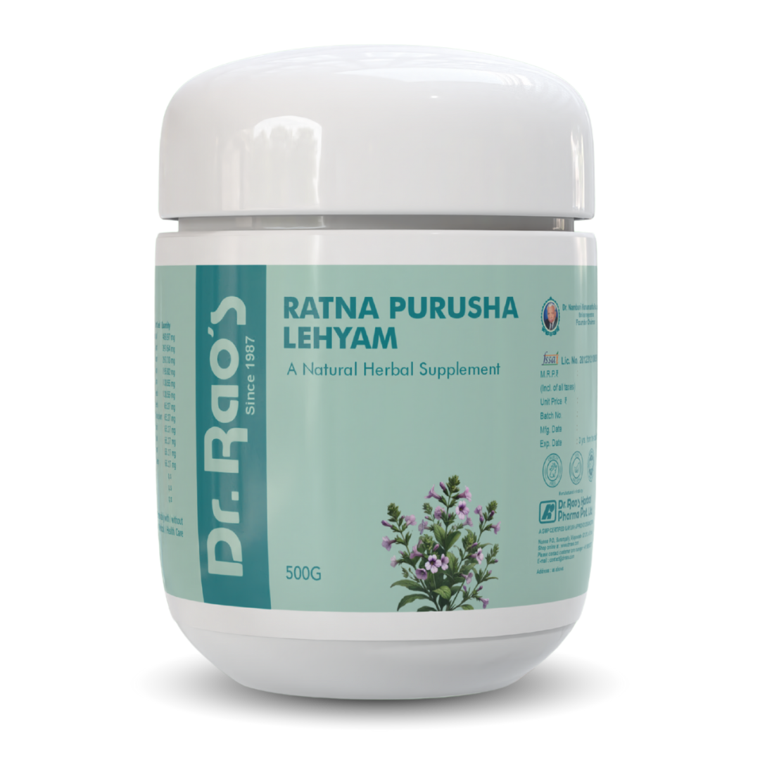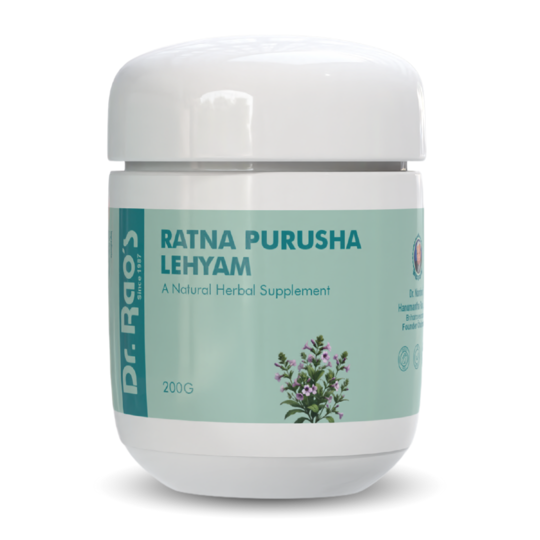 Ratna Purusha Lehyam is an Ayurvedic supplement formulated to enhance male vitality, stamina, and reproductive strength. It also supports stress relief, energy levels, and overall wellness.
